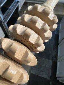 Dřevěný masážní válec na svaly je zázrak! Váleček funguje dokonale na napjaté svaly. Po dvou týdnech používání se bolest v zádech drasticky snížila.