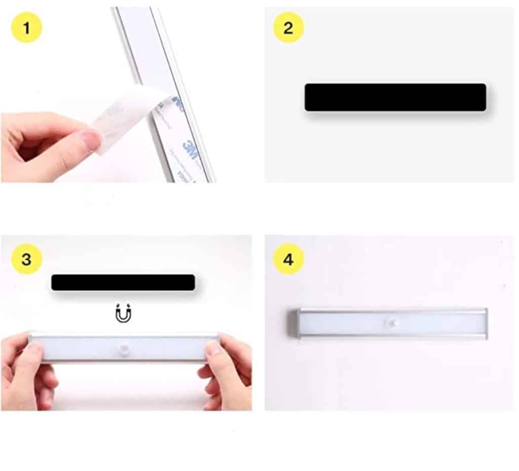 • Tato světla jsou fantastická. Instalace je tak jednoduchá, stačí odloupnout a přilepit magnetický proužek ke dveřím a magnet bude světlo držet na místě.