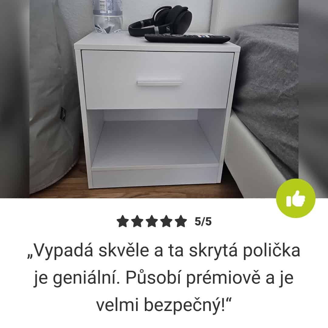 „Skrytá přihrádka je revoluce! Mohu bezpečně uložit své důležité věci, aniž bych se musel vzdát krásného a elegantního nočního stolku.“