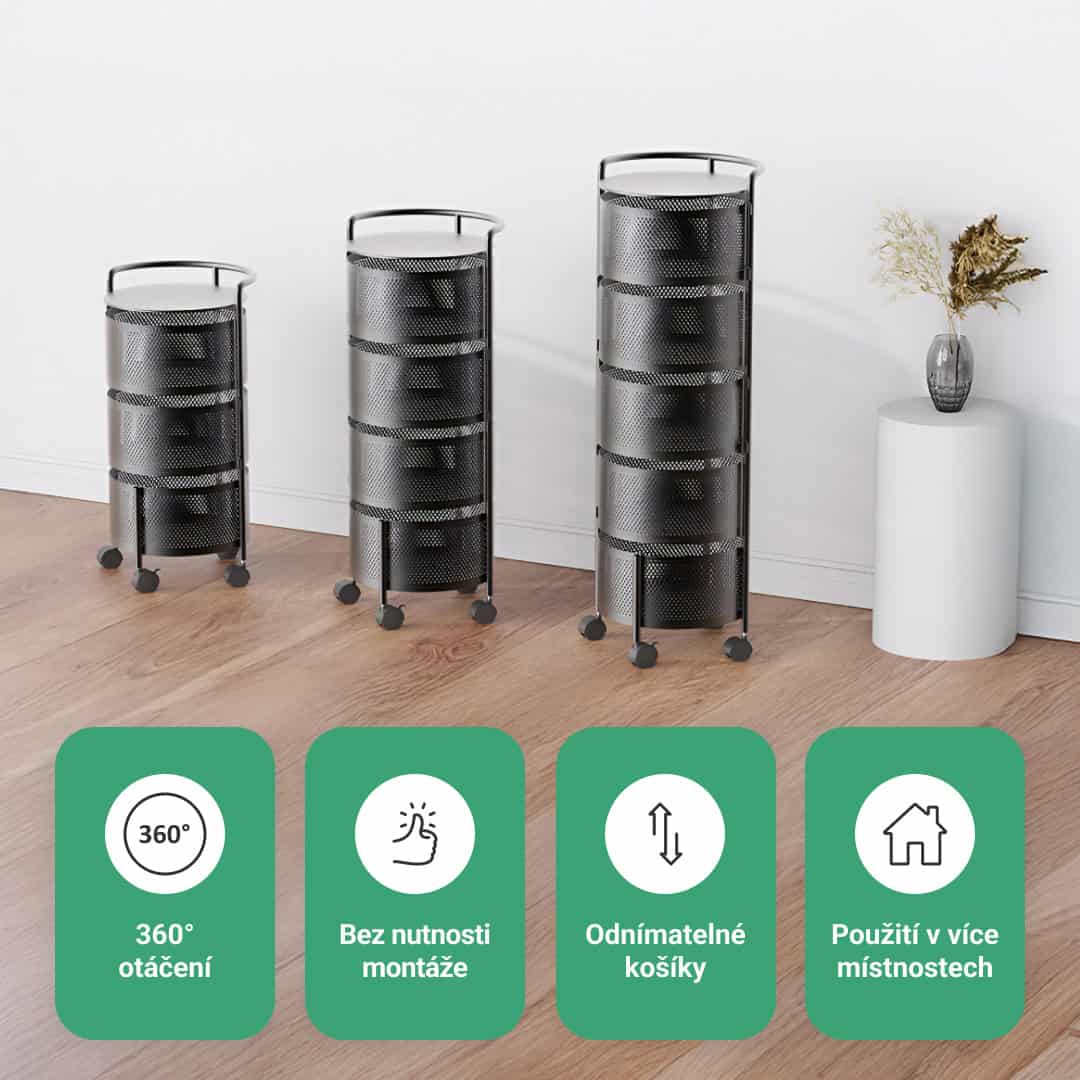 SpinRack™ – Otočný organizér z kovu se 3 úrovněmi
